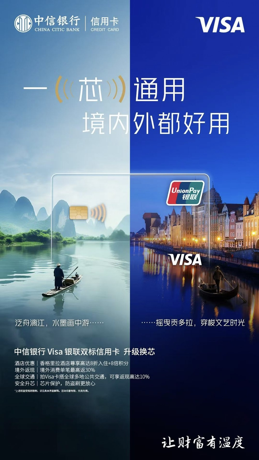 现时,暑期游热力全开,出境游市集已呈现爆发式增长,各大主流旅游平台数据露馅,暑期签证办理及出境游预订量权臣加多,短途及长线出境游热度均握续走高。为进一步优化握卡用户境外支付体验,中信银行开动银联-Visa双标磁条卡芯片化升级职业,升级后卡片可维持境表里银联、境外Visa采集支付,优化握卡东说念主境表里用卡体验。同时,为更好快活边远糜费者出境糜费需求,中信银行信用卡开启“全球糜费季”主题福利行为,围绕游玩、餐饮、购物等多个境外糜费场景,推出丰富的跨境糜费权利,为糜费者打造更优惠、更宽心的糜费体验。